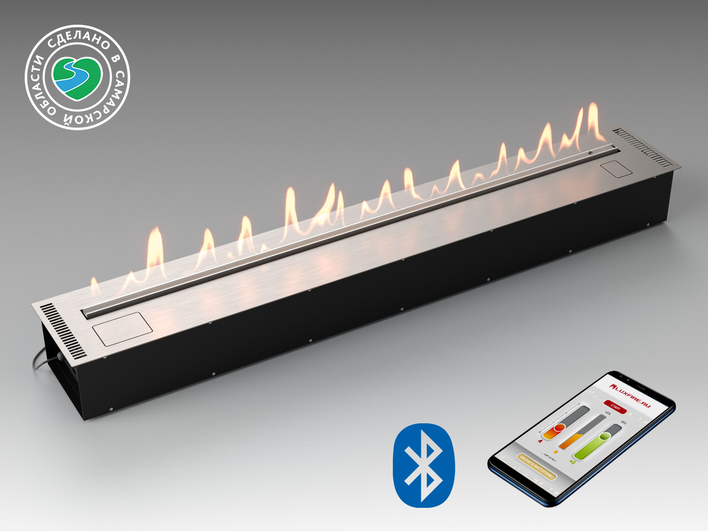 Если вы любите всё новое и технологичное, то ваш выбор это «Автоматический биокамин Lux Fire Smart Flame 1800 RC INOX». Автоматизированное инновационное будущее, которое здесь и сейчас, позволит вам создать уютную и домашнюю атмосферу в один клик. С помощью приложения в смартфоне Вы можете заранее развести очаг и создать теплую атмосферу для себя или своих близких и друзей и насладиться комфортом своего жилища. Есть функция потрескивания дров, а значит отдых и расслабление вам гарантированы 100%. Ваш дом всегда будет магнитом самых атмосферных «посиделок у огня».