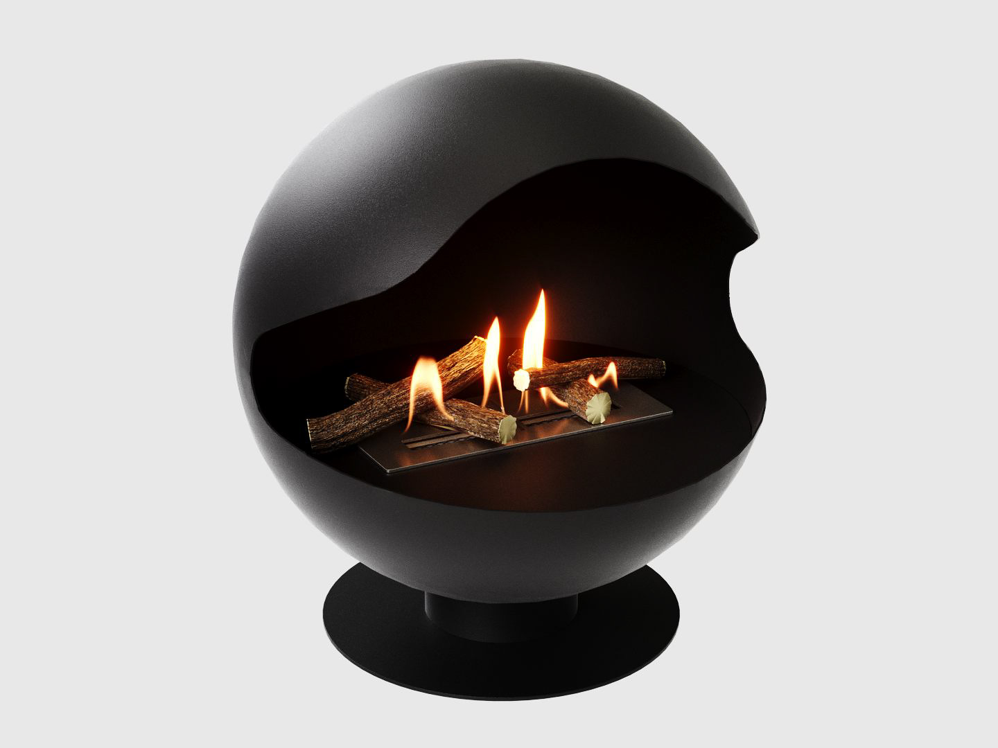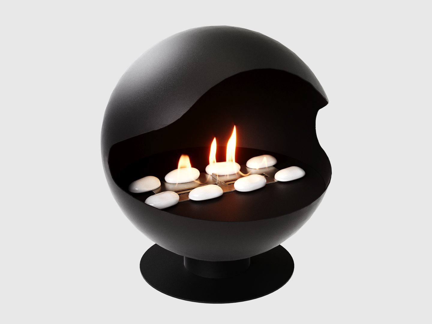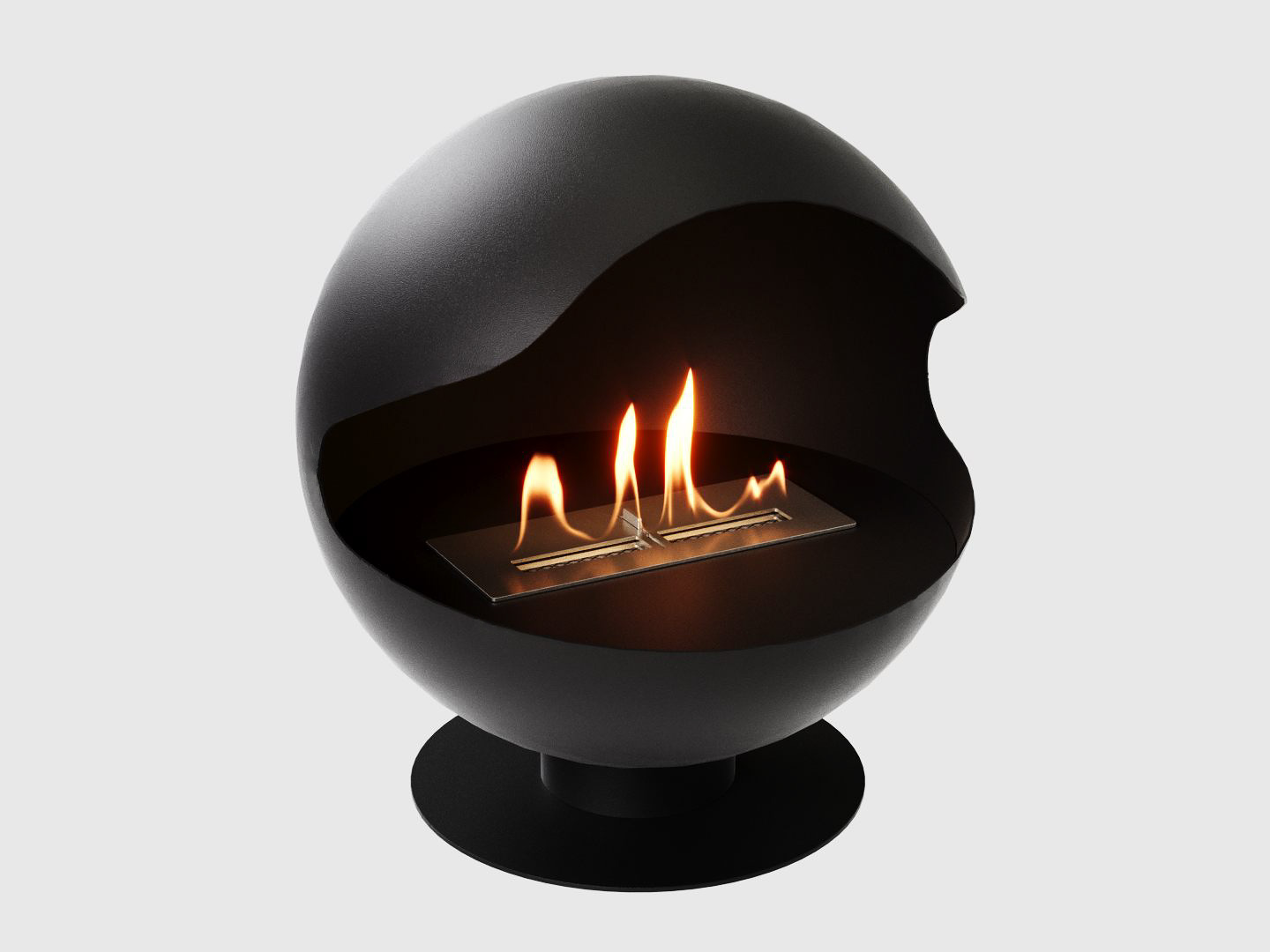 Представляет собой металлическую сферу на низкой подставке с топливным блоком Lux Fire 300 М. Оригинальный дизайн.
