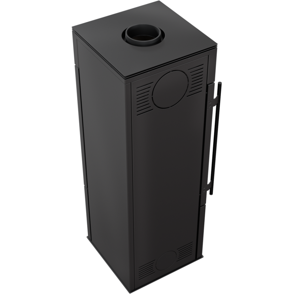 Подача воздуха в печь происходит снаружи, благодаря встроенному патрубку D100 мм. Дымоход может быть подключен к печи сзади или в верху.